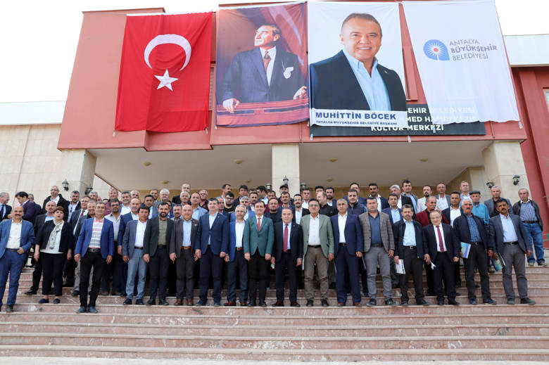 Muhtarların düğün salonu talebine karşı Elmalı Belediyesi’nin yer tahsis edeceğini, tahsis sonrası da çalışmalara başlayacaklarını belirten Başkan Böcek, ülkede yaşanan ekonomik sıkıntı nedeniyle borçlu belediyelerin ilk sırasında yer aldıklarını söyledi. Tüm ilçelerde asbestli boruların değiştirileceğini ve bir devrin kapanacağını söyleyen Başkan Böcek, Elmalıya yapılması gereken hizmetleri yapmak için gayret edeceğini ifade etti.