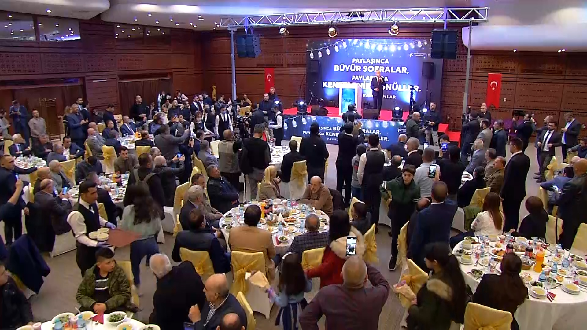 İstanbul'da katıldığı iftar yemeğinde konuşma yapan CHP lideri Kılıçdaroğlu, "Bütün mesele ortak idareyi egemen kılmaktır. Biz bu ortak iradeyi egemen kılmak zorundayız. Bu güzel ülkede hepimiz kucaklaşalım ve barış içinde yaşayalım. En büyük arzum. Benim bu coğrafyada yaşayan herkese bir sözüm var. Ben bu kucaklaşmayı sağlayacağım" dedi...